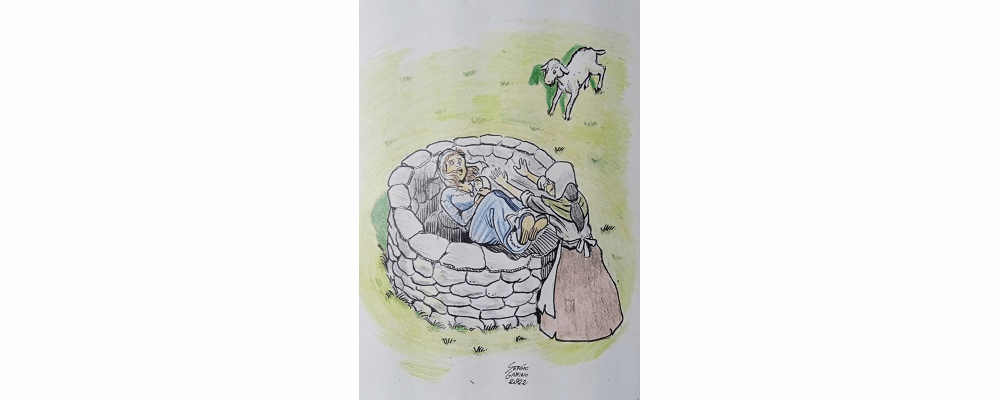 E ha detto che il re ha sentito, ha sentito delle voci, à dì “Ma vedi quell’agnellino che si disperava, che diceva quello lì, ha detto, e ma cosa c’è oggi nel pozzo?” Allora vanno a vedere nel pozzo, l’acqua chiara, si vedeva laggiù la signora col bambinetto in braccio, ohhh, ha detto “Per carità”. Allora han preso, han fatto subito prendere una cesta, l’han legata, han calato la cesta nel pozzo e allora la donna, vedendo la cesta così, si è messa, e col bambino in braccio, e allora l’han tirata su. Oh, il re ha detto: “Ma subito – ha detto- ma mi è sembrato che quella donna che era là non fosse stata; perché cosa, cosa hai fatto?” ha detto. “Perché la mia matrigna è venuta a trovarmi, e così mi ha buttato nel pozzo, e dice che lì, quel bambinetto dice che è venuto tutto riccioluto, eh, quando è stato fuori dall’acqua, l’agnellino è andato lì: lo leccava perché gli voleva bene, e quella ha detto che ha fatto così, e l’acqua dei capelli è andata sull’agnellino, è stato un bel ragazzo è stato suo fratello, un bel ragazzo, e così ah, ha detto, il re ha detto: ” Ho capito adesso che questa à dì – ma quella era la matrigna, si era messa nel letto e poi voleva ancora fare, credeva di averli ammazzato, e invece la bambina, oh, i nostri ce lo dicevano : “Perché era brava”, i nostri ci raccontavano, perché noi dicevamo: “Perché non è morta?” “E non è morta perché era brava, era una brava donna e voleva bene anche alla sua matrigna, ma la sua matrigna e invece era cattiva e l’ha gettata nel pozzo col bambinetto eh.