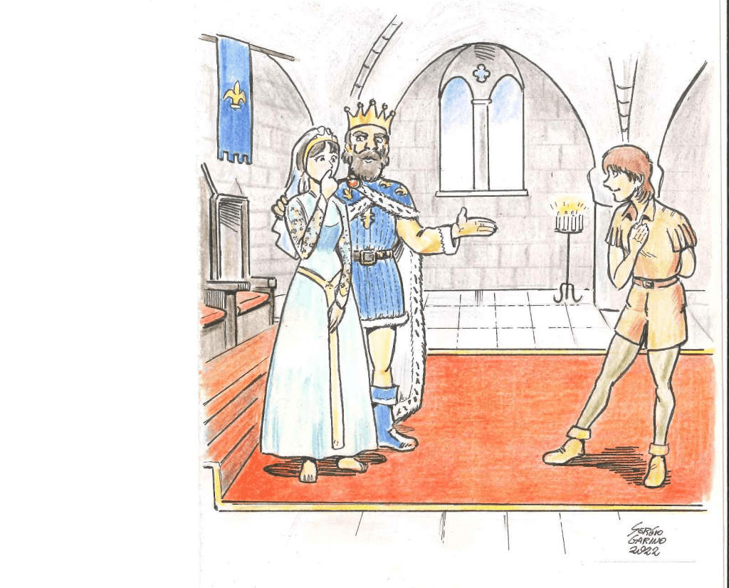 E allora ha portato il tesoro e Urlindu è stato contento, ha portato il tesoro e ha detto “Adesso, questo è il tesoro del re di Francia, gli chiedo la sua figlia in sposa ” E difatti è stato così. Allora arriva quel marmit, quel marrait è arrivato lì. Oh, è stato tante male; a dit “Ma io son sette anni che faccio penitenza, adesso che avevo trovato quella tuma “, era andato a cercarsi un po’ di farina per far la polenta , e adesso che aveva la farina della polenta “Uh , ma gli mando una maledizione a quello lì , se è un uomo che diventi una donna, e se è una donna che diventi un uomo”