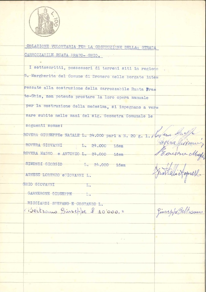 Alcuni abitanti della borgata prestarono invece la loro opera, per un compenso giornaliero pari a 1200 lire.