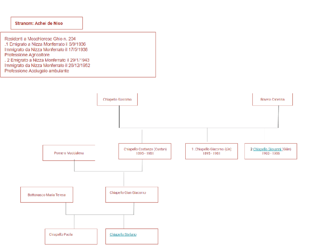 Achei de Nìso Questo stranòm è successivo al tempo in cui la famiglia Chiapello viveva stabilmente a Ghio.Indica infatti la cittadina Nizza Monferrato in cui la famiglia si è fermata per esercitare stabilmente in zona il mestiere di acciugai. Condividi: Fai clic per condividere su X (Si apre in una nuova finestra) X Fai clic per condividere su Facebook (Si apre in una nuova finestra) Facebook Mi piace Caricamento... Correlati