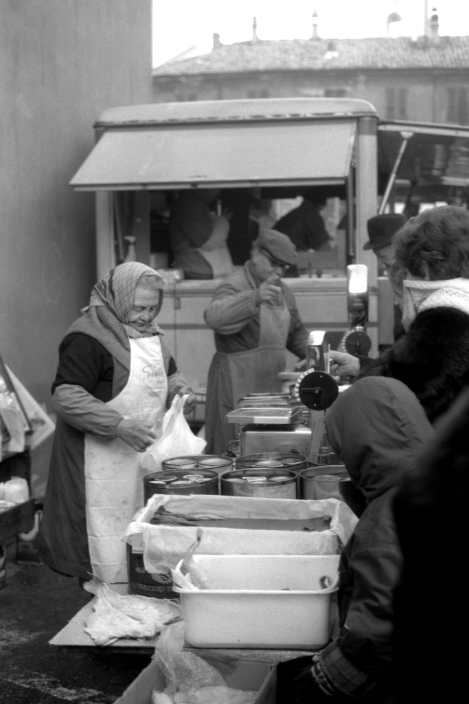 Anni 50 mercato di Alba. Al fondo gli acciugai Simondi Giacomo, Magliano Pierina, Rovera GiuseppeAcciugaio Sergio Rovera 1983-Alba Piazza RossettiAcciugai Vittoria e Giorgio Simondi 1987- Alba Piazza RossettiAcciugai Vittoria e Giorgio Simondi 1987- Alba Piazza RossettiAcciugai Vittoria e Giorgio Simondi 1988- AlbaAcciugai Vittoria e Giorgio Simondi 1989- AlbaIl triciclo utlizzato da Rovera Giuseppe e Magliano Pierina per portare i prodotti al mercato– Alba