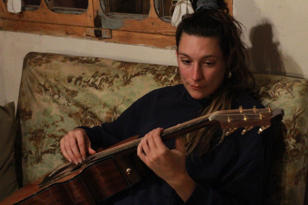 Parte integrante dell’attività di ricerca e di scambio è stata la condivisione dei canti tradizionali locali che comprendono canti di corteggiamento, canti per il matrimonio, canti di viaggio e ninne nanne. Attraverso la ripetizione delle strofe e la ricerca delle armonizzazioni abbiamo abitato il  patrimonio melodico locale e ce ne siamo in qualche modo “appropriati” temporaneamente, portando nuovamente la musica sulla calatà, quella che viene chiamata da Elena la “piazza”, un piccolo spiazzo erboso al centro del paese, un tempo centro dell’aggregazione di Codighiu.