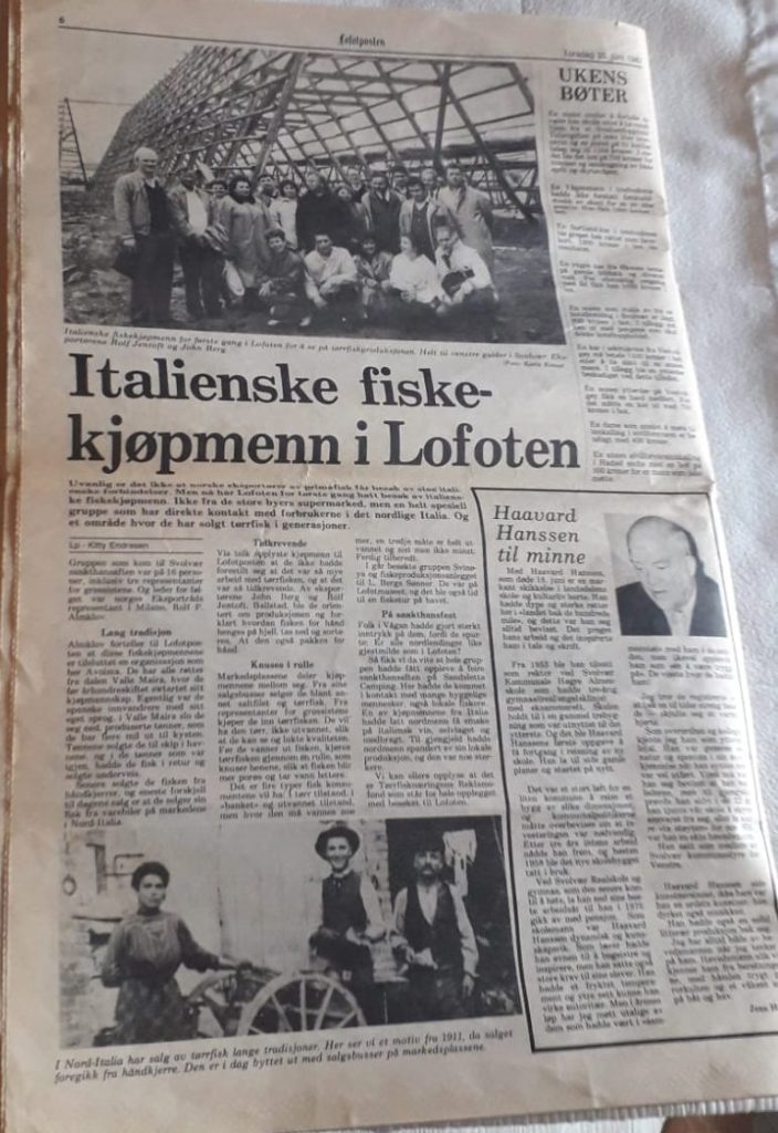 Acciugai in visita alla lavorazione delle acciughe in Sicilia (Foto di G. Ferreri)Acciugai in visita alla lavorazione delle acciughe in Sicilia Acciugai che ispezionano una partita di acciugheAcciugai in Norvegia in visita alla lavorazione del merluzzoGiuseppe Ferreri e Bruno Reineri in Sicilia per assistere alla lavorazione delle acciugheFerreri Giuseppe, Reineri Bruno e altri acciugai in Norvegia, in visita alla lavorazione del merluzzoGiornale norvegese che mostra la visita degli acciugai della Valle MairaGiornale norvegese che mostra la visita degli acciugai della Valle MairaFesta Avalma